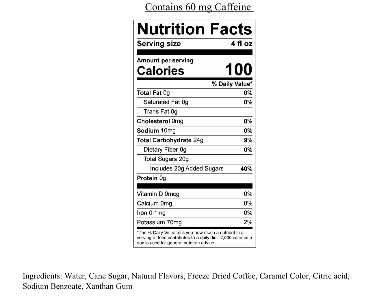 This product contains 60mg of caffeine per 4 oz serving.